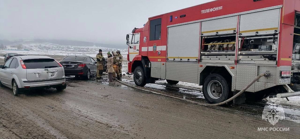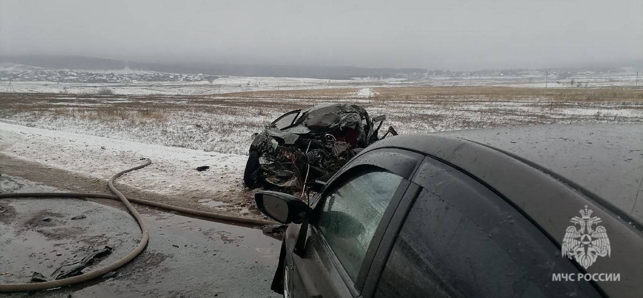 На автодороге местного значения в 13-ти километрах от Туймазов автобус «НефАЗ» столкнулся с легковым автомобилем «Лада Гранта», в которую в дальнейшем въехал «Хендай Солярис».
