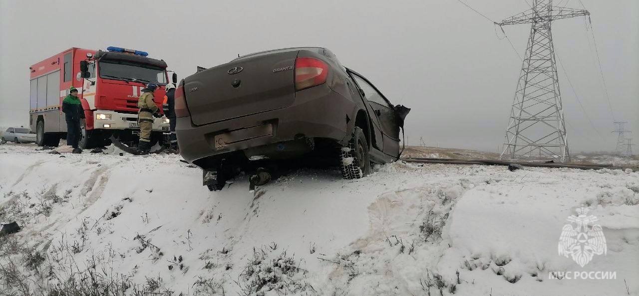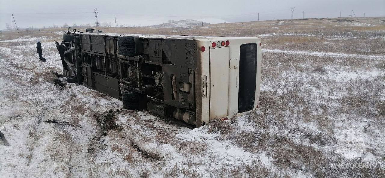 Автобус, в салоне которого находились 33 пассажира и один водитель, съехал в кювет и опрокинулся. В салоне находились 33 пассажира и водитель. Двух человек из автобуса доставили в больницу.