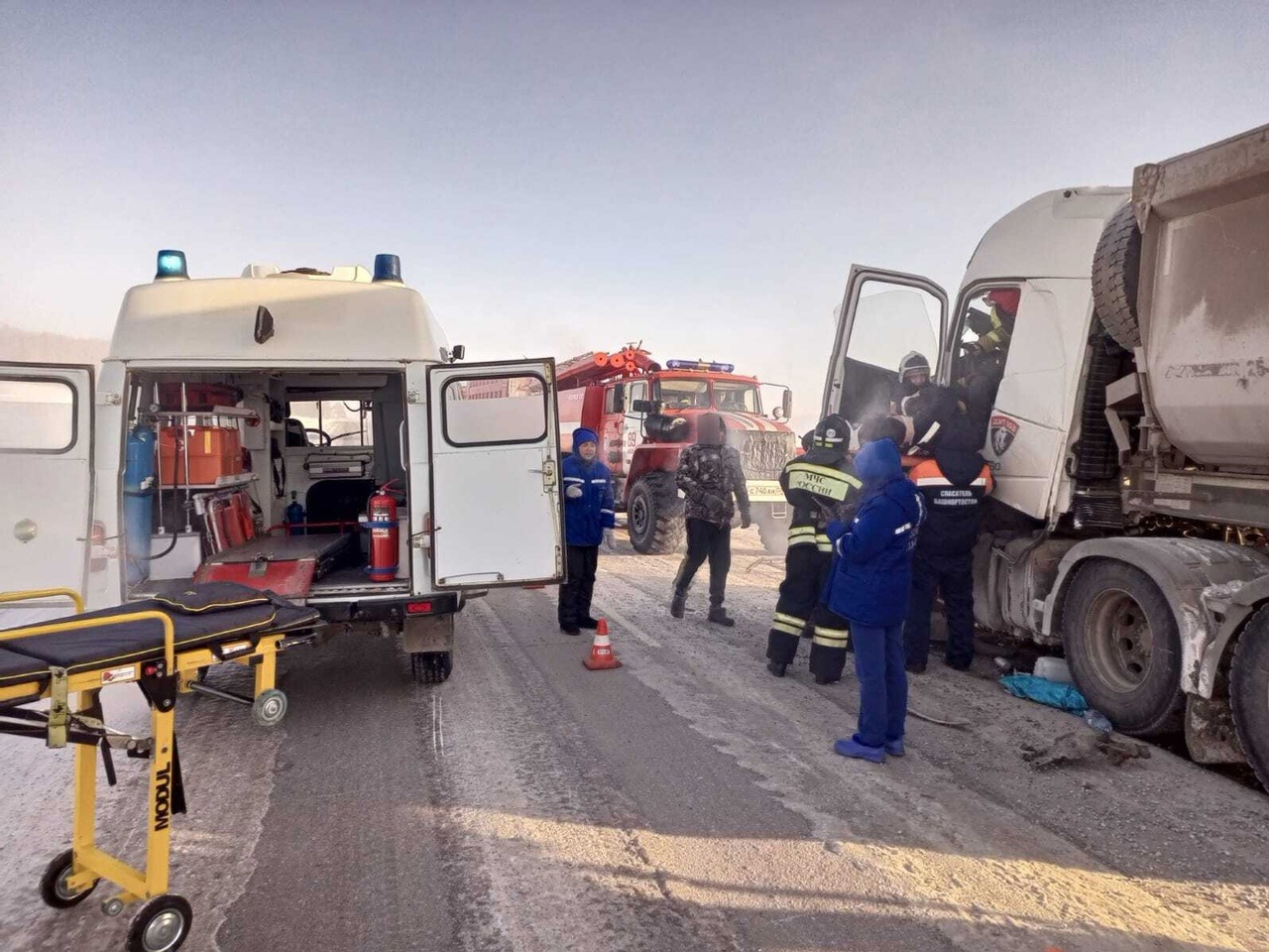 В Госкомитете РБ по ЧС сообщили, что ДТП произошло на 28 километре автодороги Крапачево-Месягутово в Салаватском районе. Грузовик Volvo совершил столкновение со следовавшим впереди него грузовым автомобилем Hongyan.