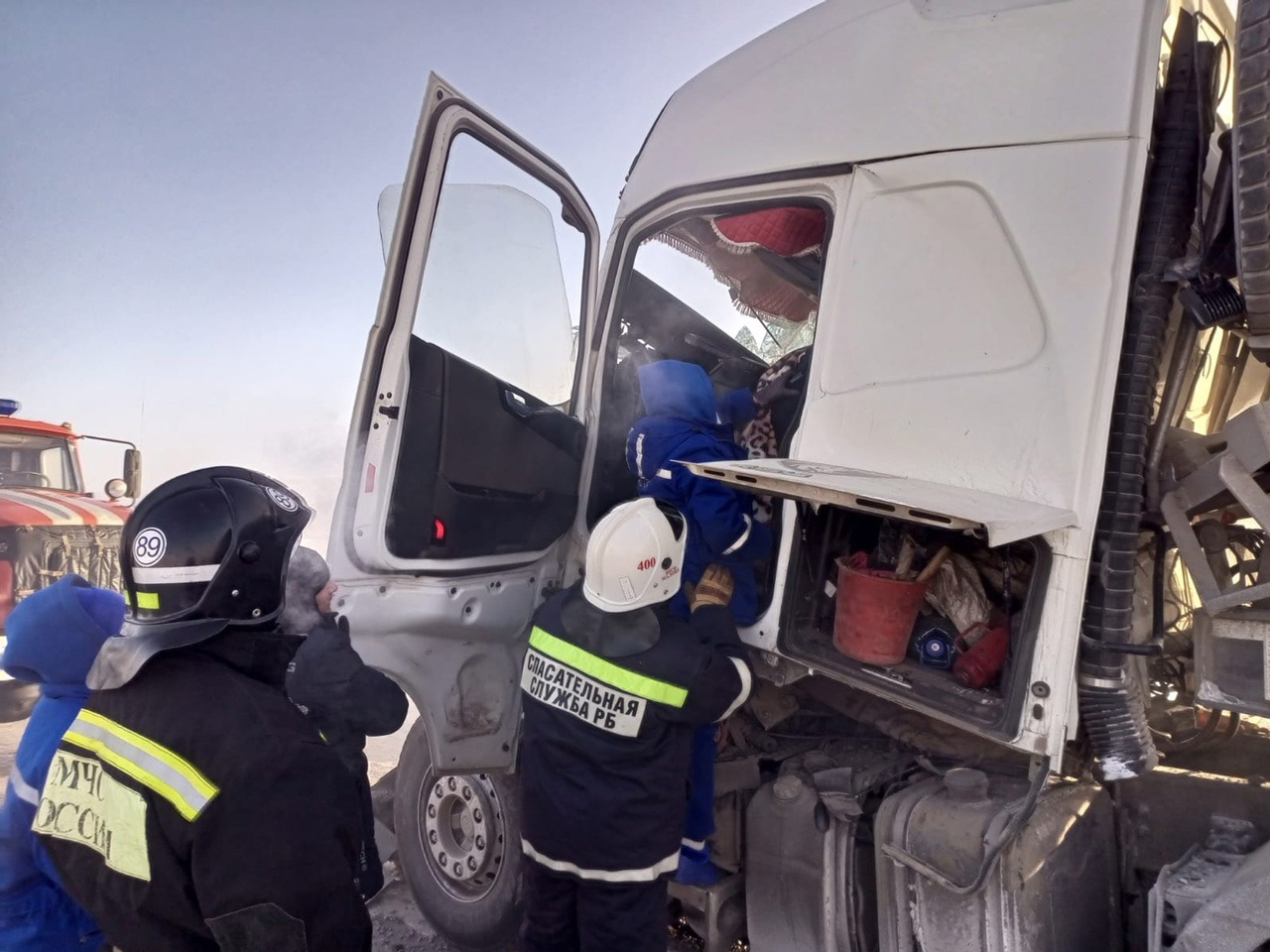 В Башкирии столкнулись два грузовых автомобиля. Потребовалась помощь спасателей.