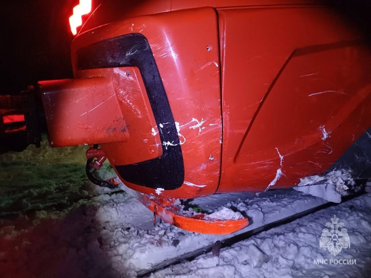 Машинист поезда применил экстренное торможение, но расстояние было недостаточным и столкновения избежать не удалось.
