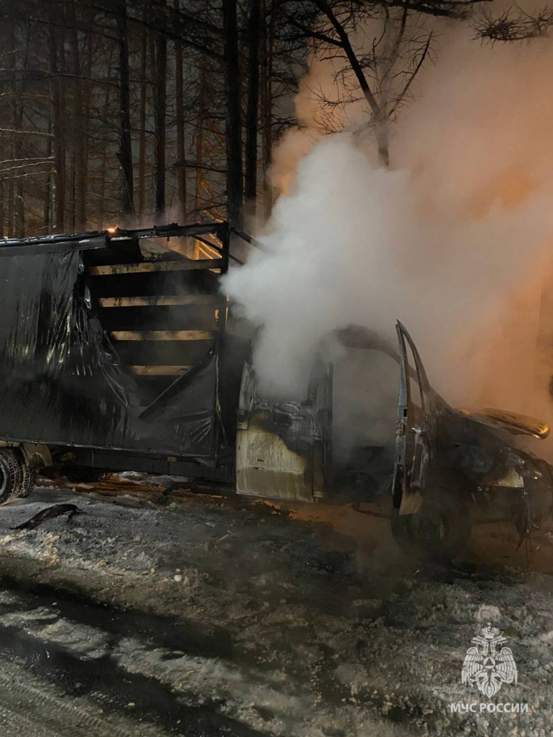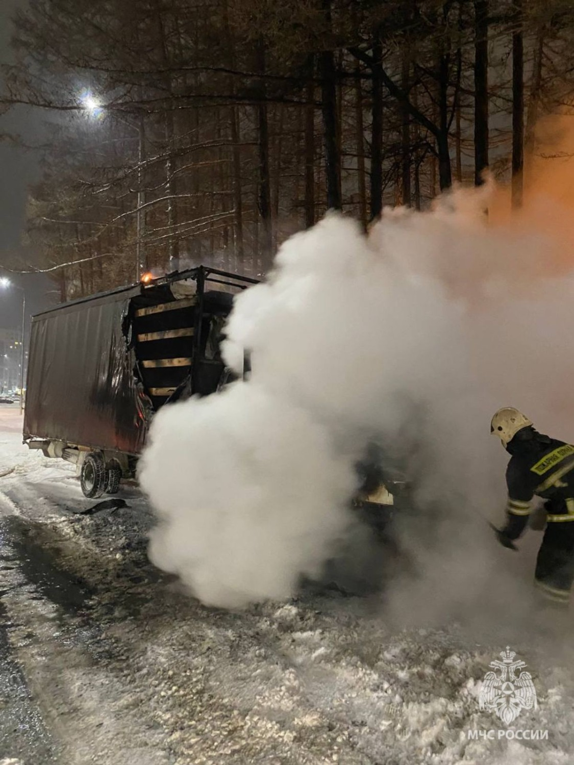 К месту возгорания отправились пожарные МЧС России. Они обнаружили, что открытым пламенем горит моторный отсек и кабина, и сразу приступили к тушению. Пожар был потушен в течение пяти минут.