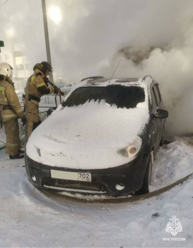 По данным ведомства, возгорание произошло в Уфе на улице Шмидта. Транспортное средство сильно выгорело.