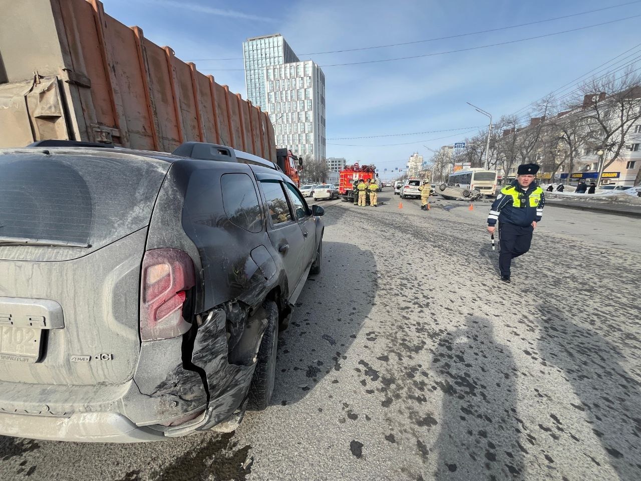 В Уфе, на проспекте Октября произошло страшное ДТП. От удара легковушка перевернулась. Подробности сообщили в Госавтоинспекции города.