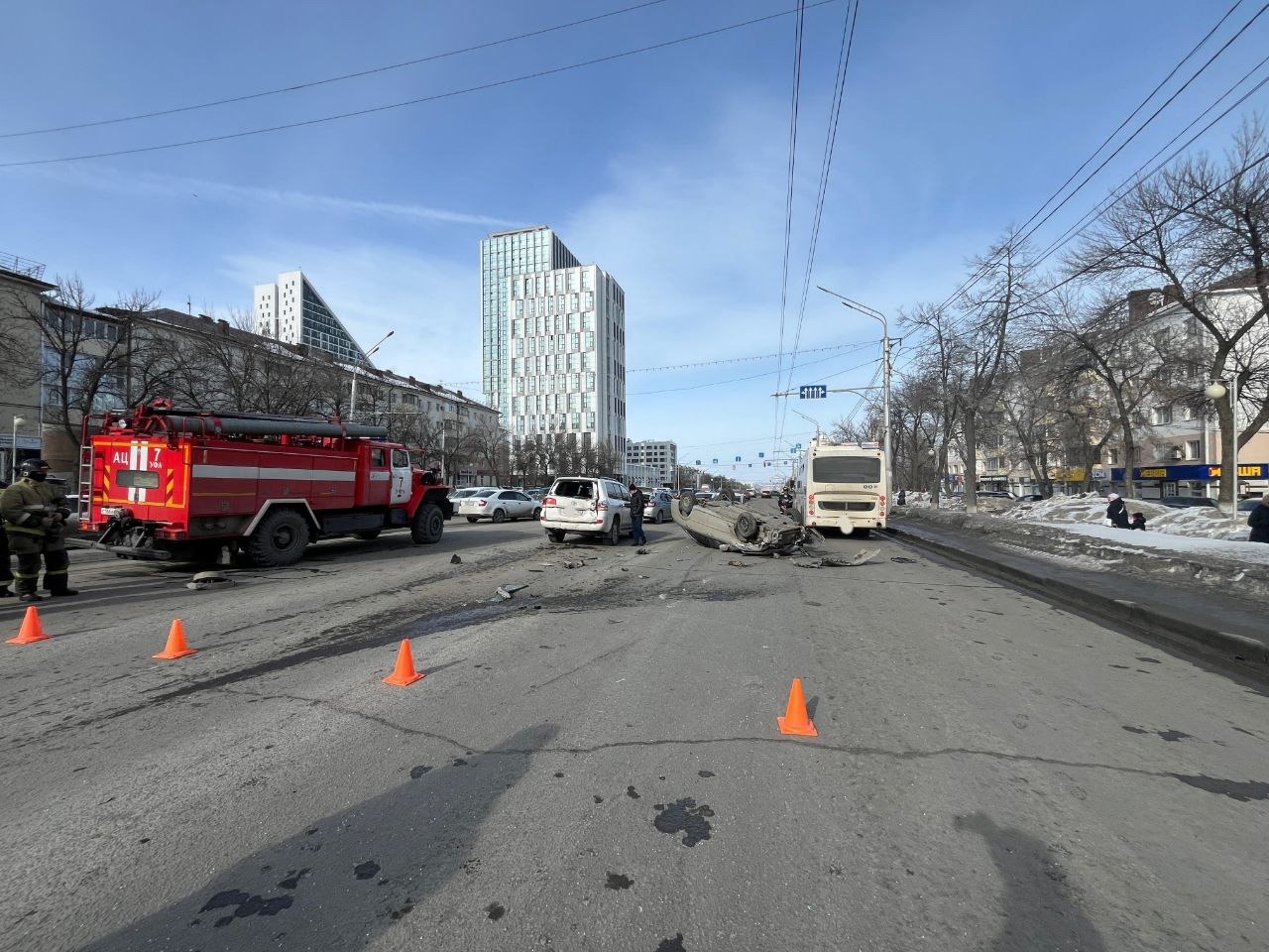 От удара машина перевернулась и ударилось об автобус «Нефаз».