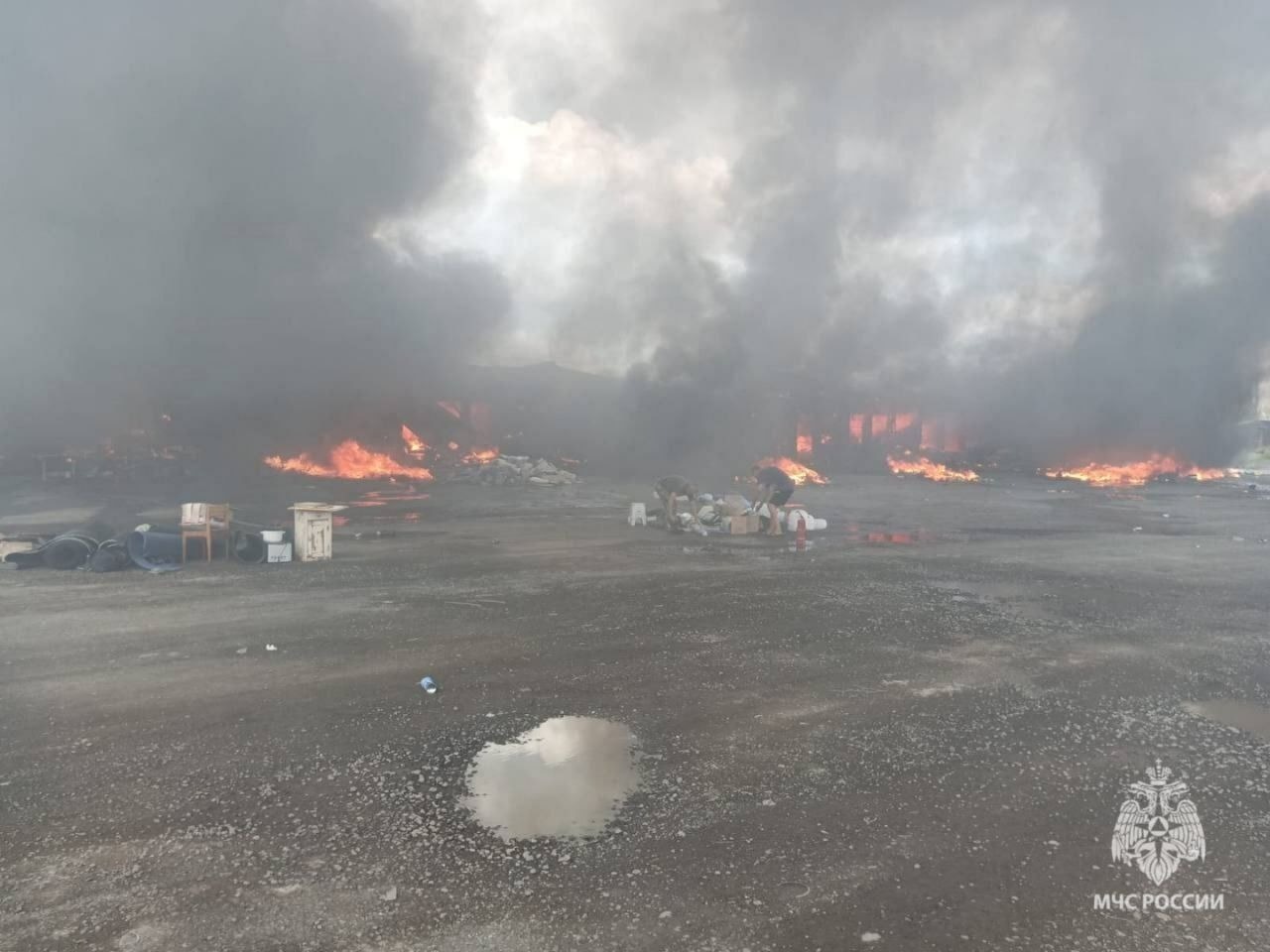 В Башкирии загорелись торговые павильоны и здание шиномонтажа на 1538-м километре трассы М5 «Урал». Об этом сообщает МЧС по РБ.