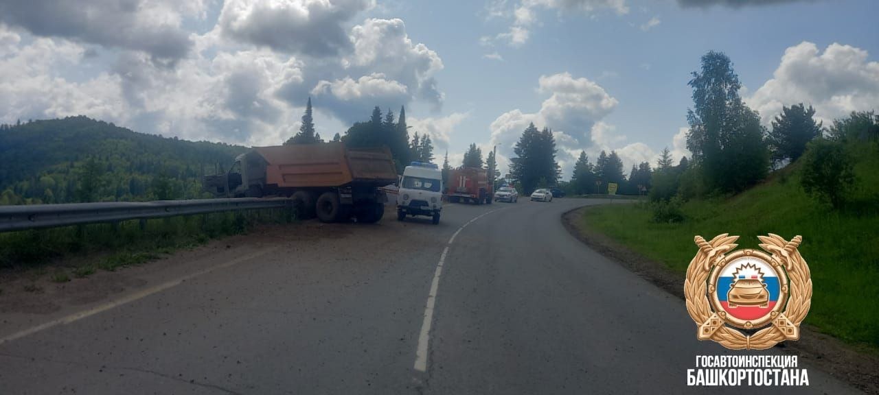 В пресс-службе Госавтоинспекции РБ сообщили, что ДТП произошло утром 4 июня на 78 километре автодороги Иглино-Красная Горка в Нуримановском районе. За рулем «КамАЗа» находился 28-летний житель Уфимского района. На спуске грузовик врезался в отбойники. От сильного удара водитель и пассажир вылетели из кабины.