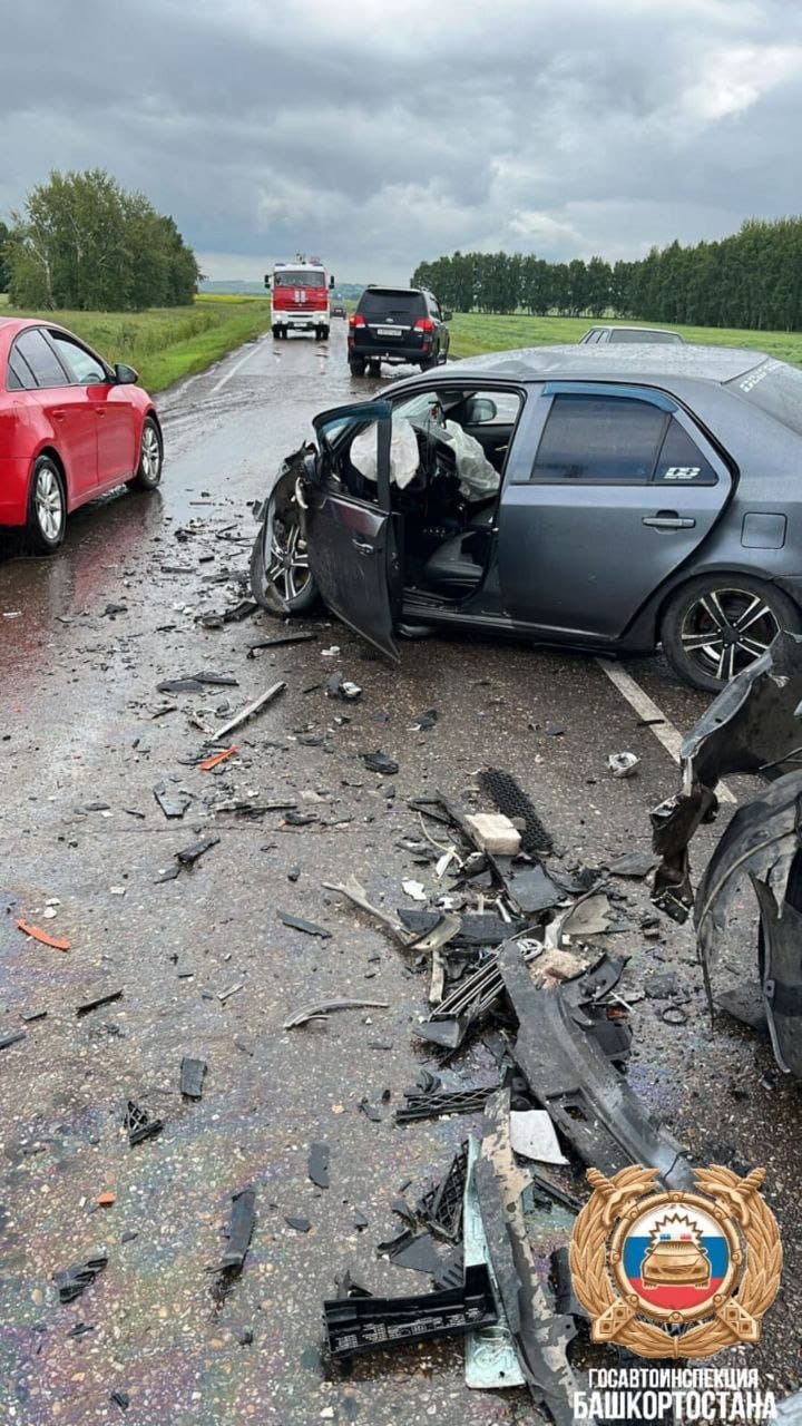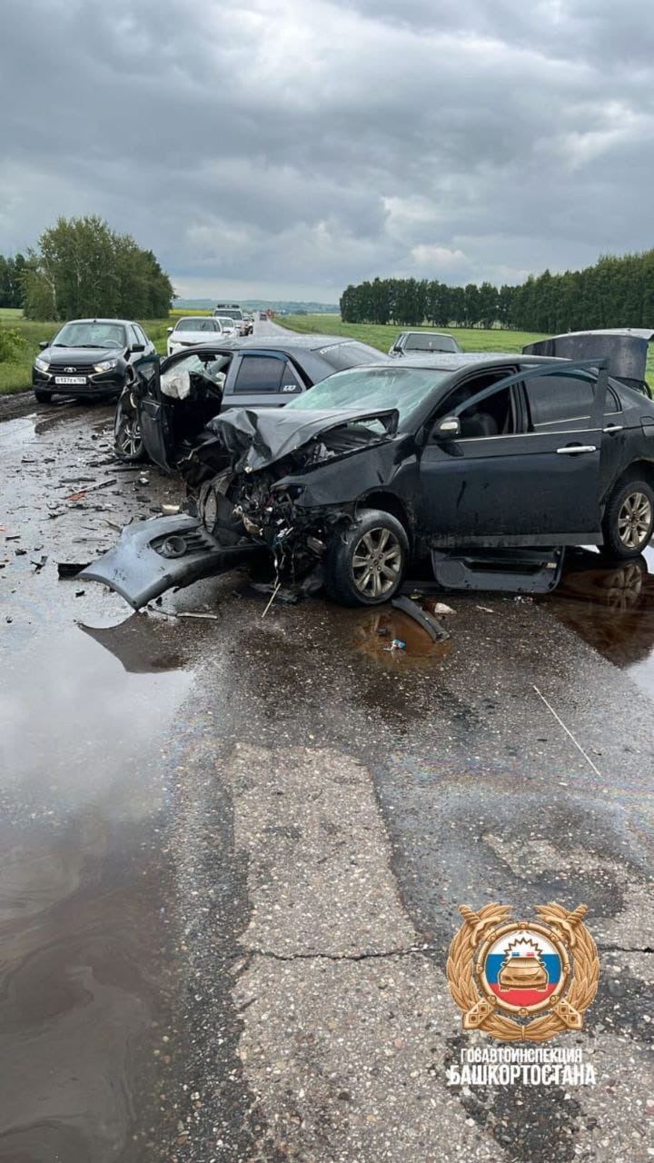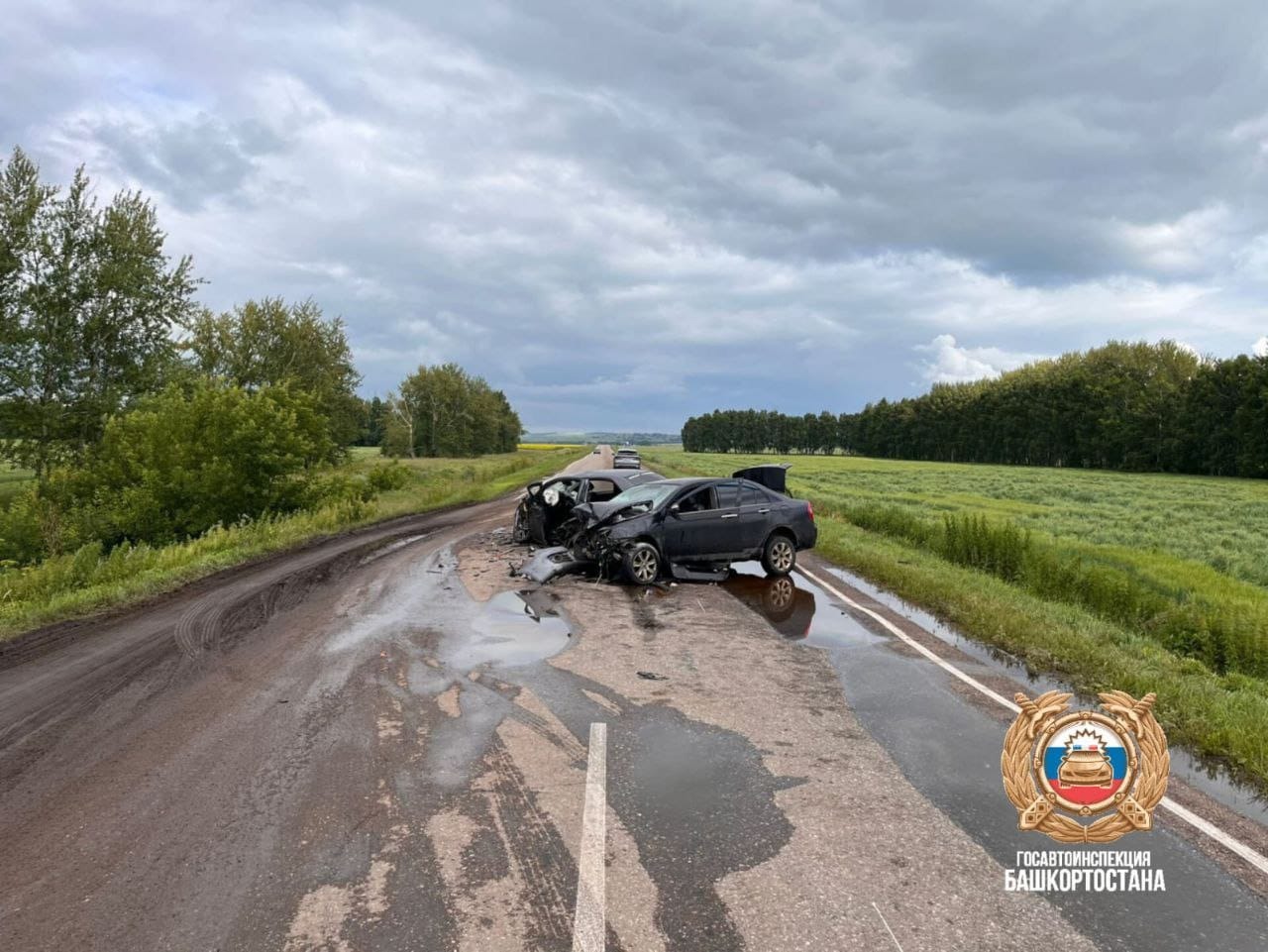 В Мелеузовском районе Башкирии днём 29 июня произошла страшная авария. Неподалёку от деревни Басурмановка по дороге Мелеуз-Нугуш столкнулись две легковушки: Geely и LIFAN.
