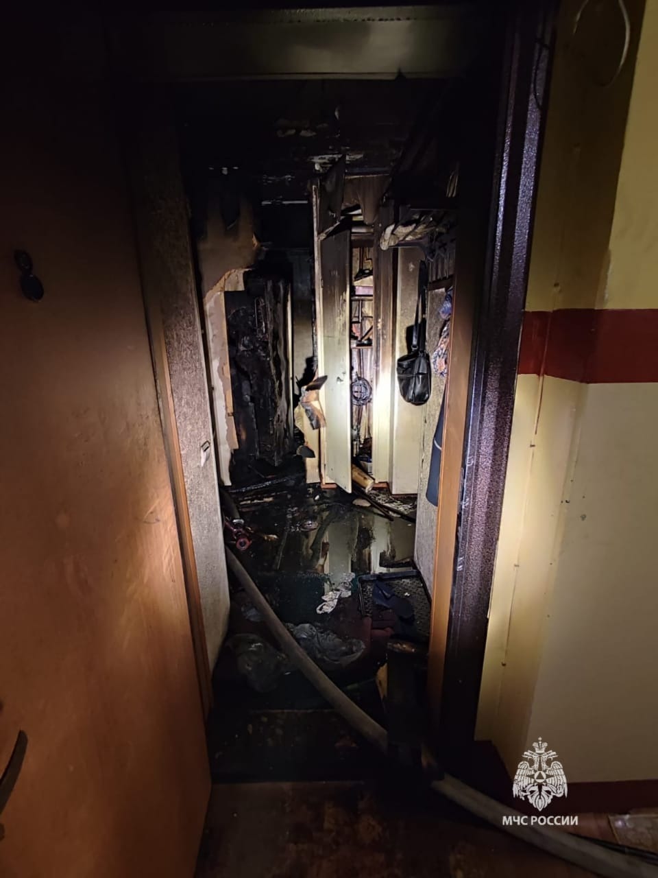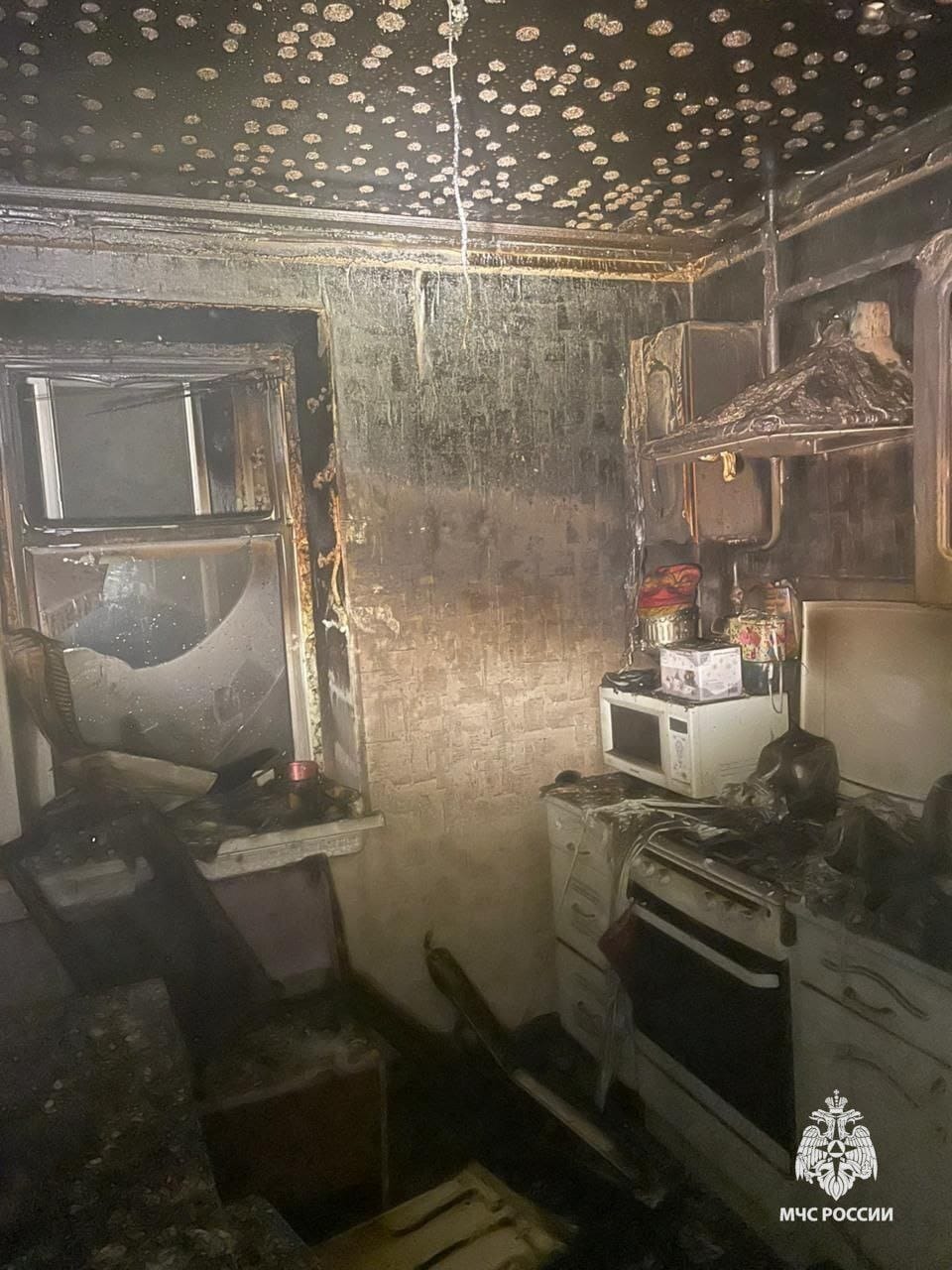 На проспекте Комсомольском в многоквартирном доме вспыхнул пожар. В квартире на втором этаже загорелось имущество на кухне. Пламя быстро распространилось на коридор, едкий дым заполнил всю квартиру.