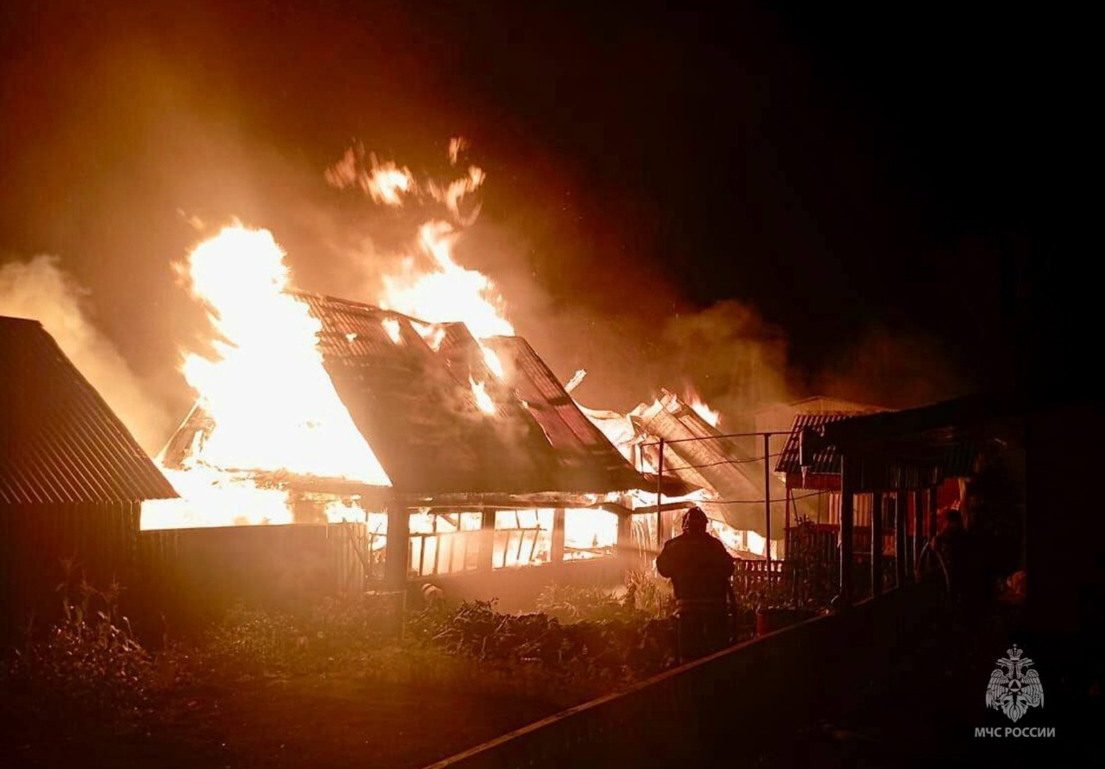В селе Тольбазы, по улице 7 ноября произошел пожар. Загорелись сразу несколько построек — летняя кухня, баня и гараж.