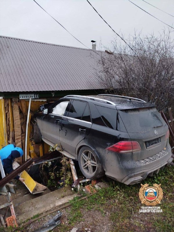 В Башкирии автомобиль въехал с улицы через стену прямо в комнату дома. Это произошло утром 18 октября в городе Октябрьский. В седьмом часу утра автомобиль «Мерседес Бенц», двигаясь по улице 1-й проезд Свободы, пробил стену частного дома и оказался наполовину внутри.