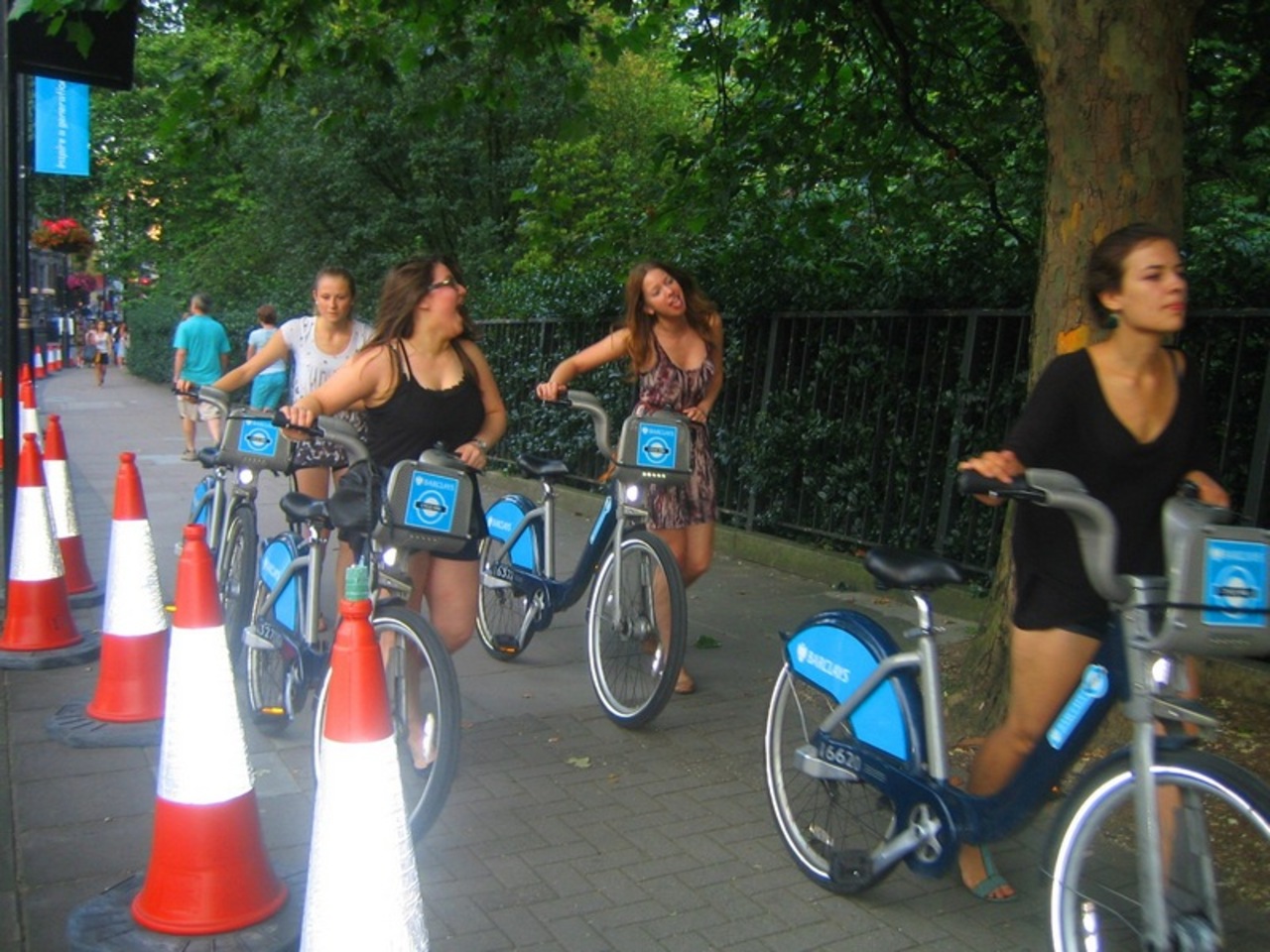 Самые молодые туристы выбрали самый дешевый и спортивный способ знакомства с городом. И целыми компаниями, и поодиночке взяли напрокат велосипеды, а пункты проката повсюду, и – вперед! Главное - не забыть о левостороннем движении в Великобритании.