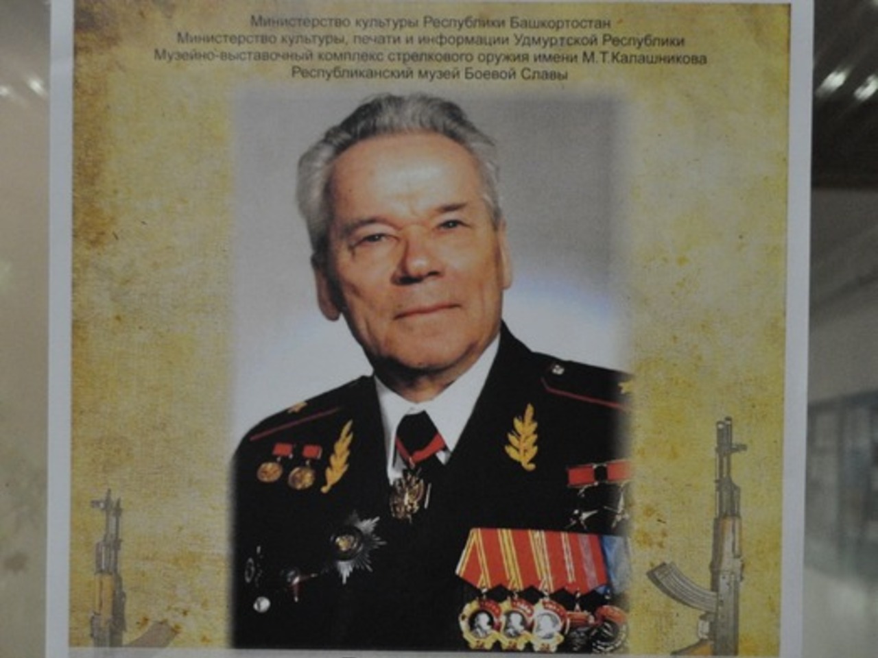 В Уфе, в музее Боевой Славы в парке Победы, проходит выставка «Легендарный Калашников». Здесь представлены различные модели автоматов, пистолетов и пулемётов, разработанных великим советским и российским конструктором стрелкового оружия, генерал-лейтенантом Михаилом Калашниковым.