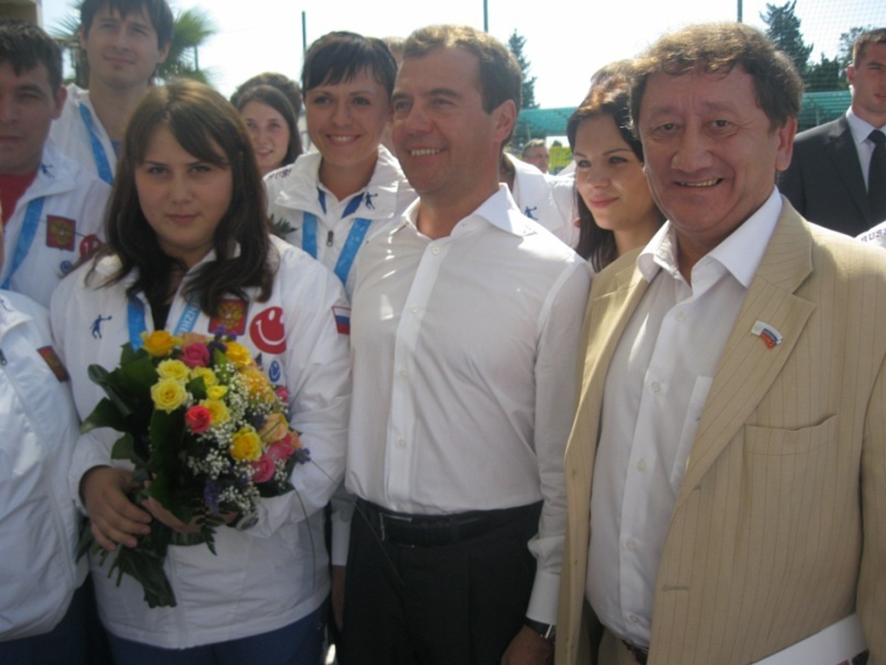 - Да. Победителей Универсиады, нескольких тренеров и президентов спортивных федераций вначале разместили под Москвой, на базе сборных в Новогорске, потом посадили на роскошный самолет с надписью «Россия» и отправили в Сочи. В нем, пока летели, кормили так шикарно, как, наверное, только в дорогих VIP-ресторанах кормят. Привезли на великолепную базу «Юг России». Всем подарили небольшие коробочки. Я вначале значения не придал, в сумку положил, но потом ребята сказали, что это какой-то очень крутой телефон последнего четвертого поколения. Вначале все строго и официально было. Дмитрий Анатольевич сказал речь. А вот когда потом на улице фотографировались, то все уже сняли галстуки, атмосфера была неформальной, доброй и простой. Интересно, что Медведев ходил, чокался со всеми бокалом с шампанским, но сам не глотка не выпил. «Я за рулем, я за рулем», - всем говорил. Мы думали, что он шутит, так как сложно представить, чтобы Медведева «гаишники» поймали и заставили в трубку дышать. Но, оказалось, что он правду говорил. Сел потом во внедорожник за руль и дал по газам! Он простой такой, я в шоке был! Потом нас позвали на большой банкет. После отвезли на самолете в Москву, всех поселили в Новогорске, и развозили на автобусах по аэропортам. Массу положительных эмоций мы привезли.