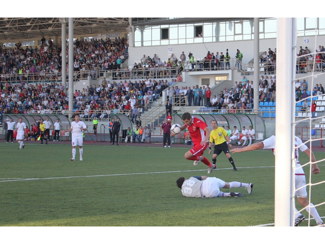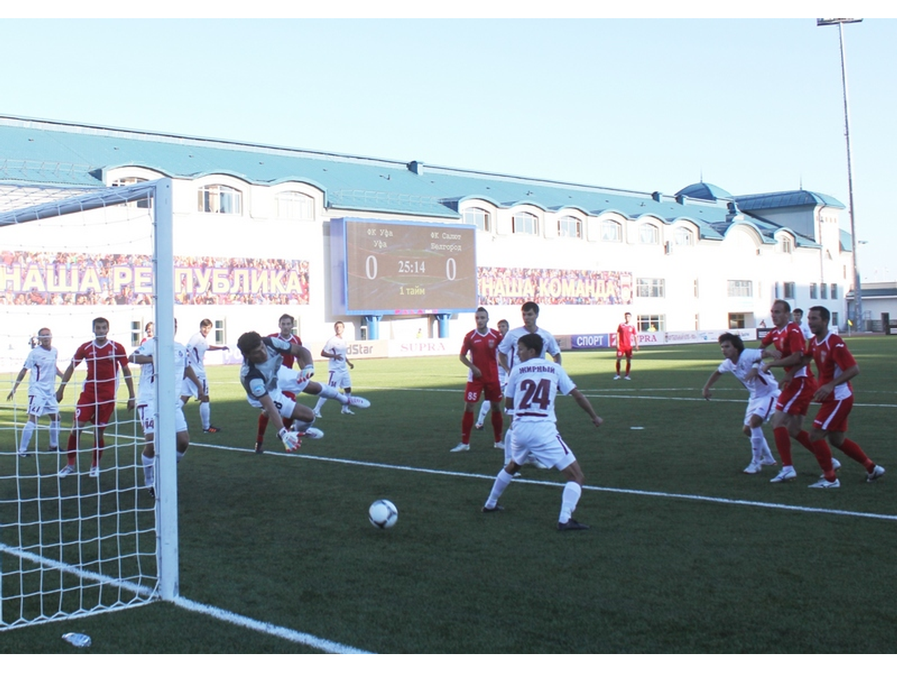 Гол «Уфа» забила во втором тайме. Михаил Маркосов долго не мог отличиться, но настал момент – и он показал, почему Колыванов постоянно доверяет ему место в основном составе. Четкий удар мимо выбежавшего на встречу вратаря – и гол! Уфимцы после этого гола стали болеть за своих активней.