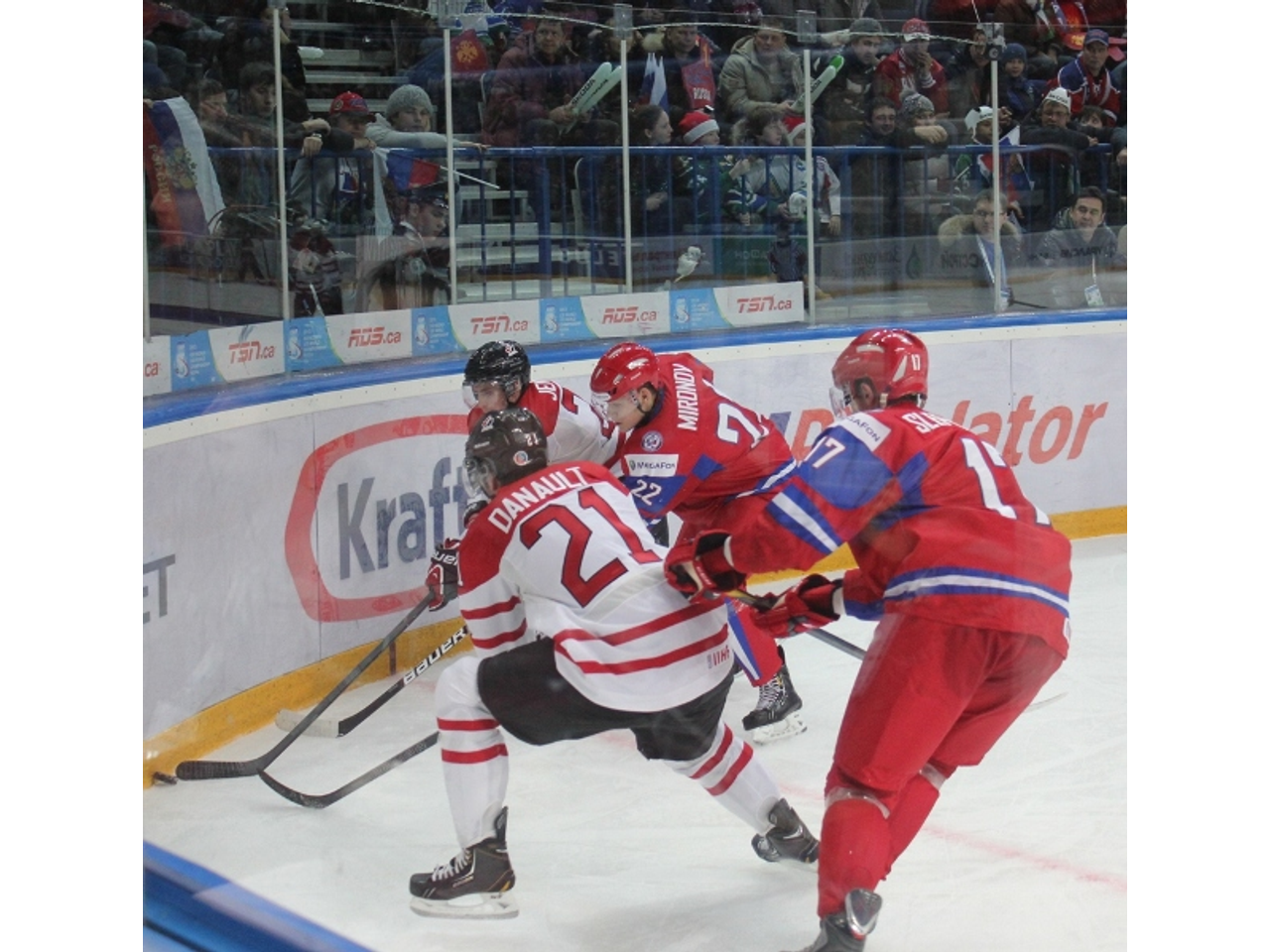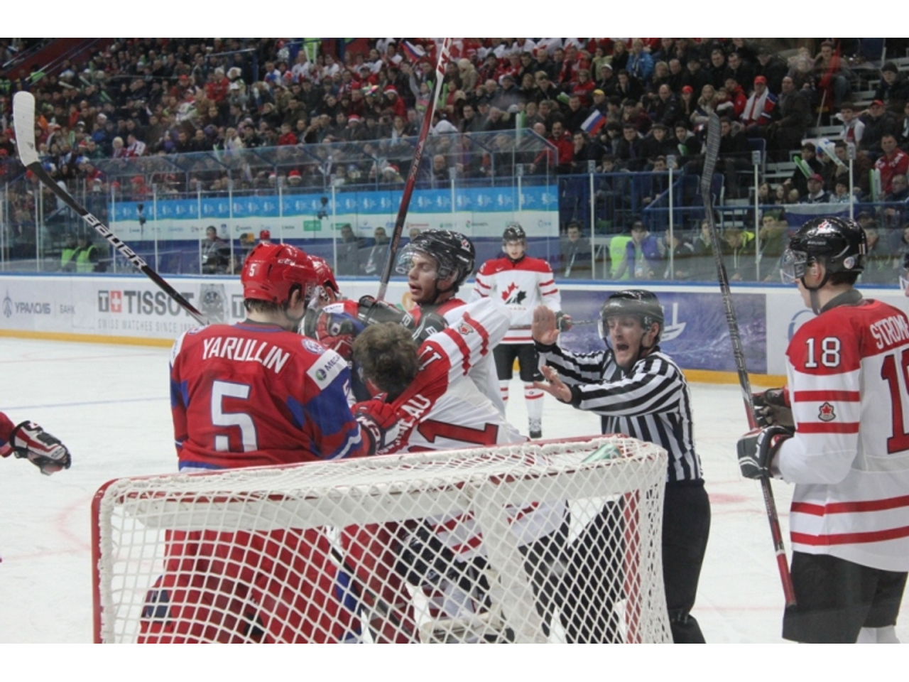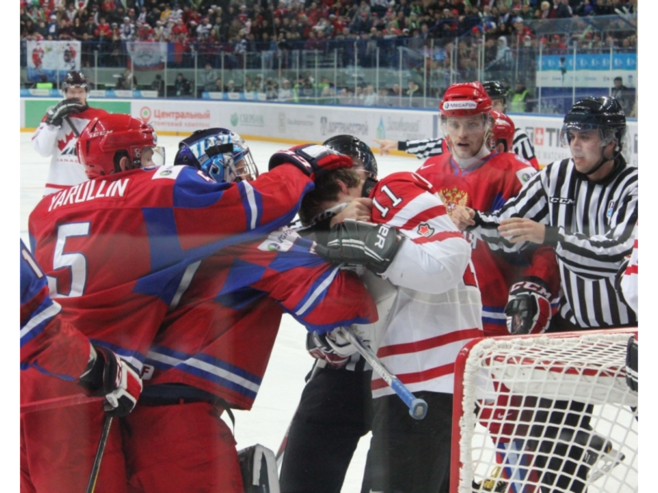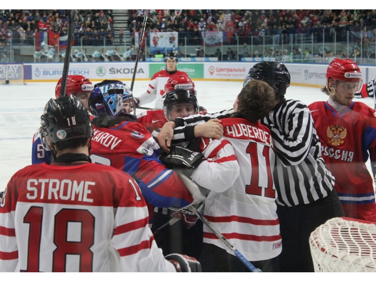 В смешную зону выходит огромное количество канадских игроков и всего несколько злых россиян. Форвард Антон Слепышев и вратарь Андрей Макаров утверждают «ОЭГ», что игру испортило пятиминутное удаление во втором периоде.