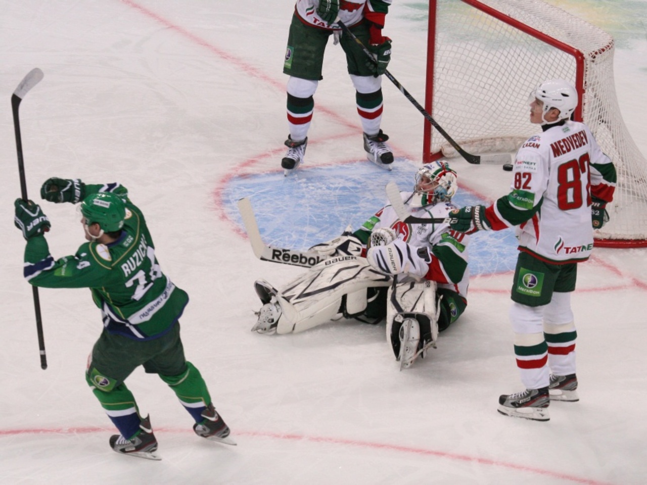Этот сигнал был верным. Но вначале Барулин пропустил еще одну легкую шайбу. Она прошила его и снова медленно закатилась в ворота. Причем катилась еще медленней, чем в первый раз. Над «Ак Барсом» повисли тучи. Надежный вратарь превратился в дырку. Будет ли замена голкипера? Замены не последовало.