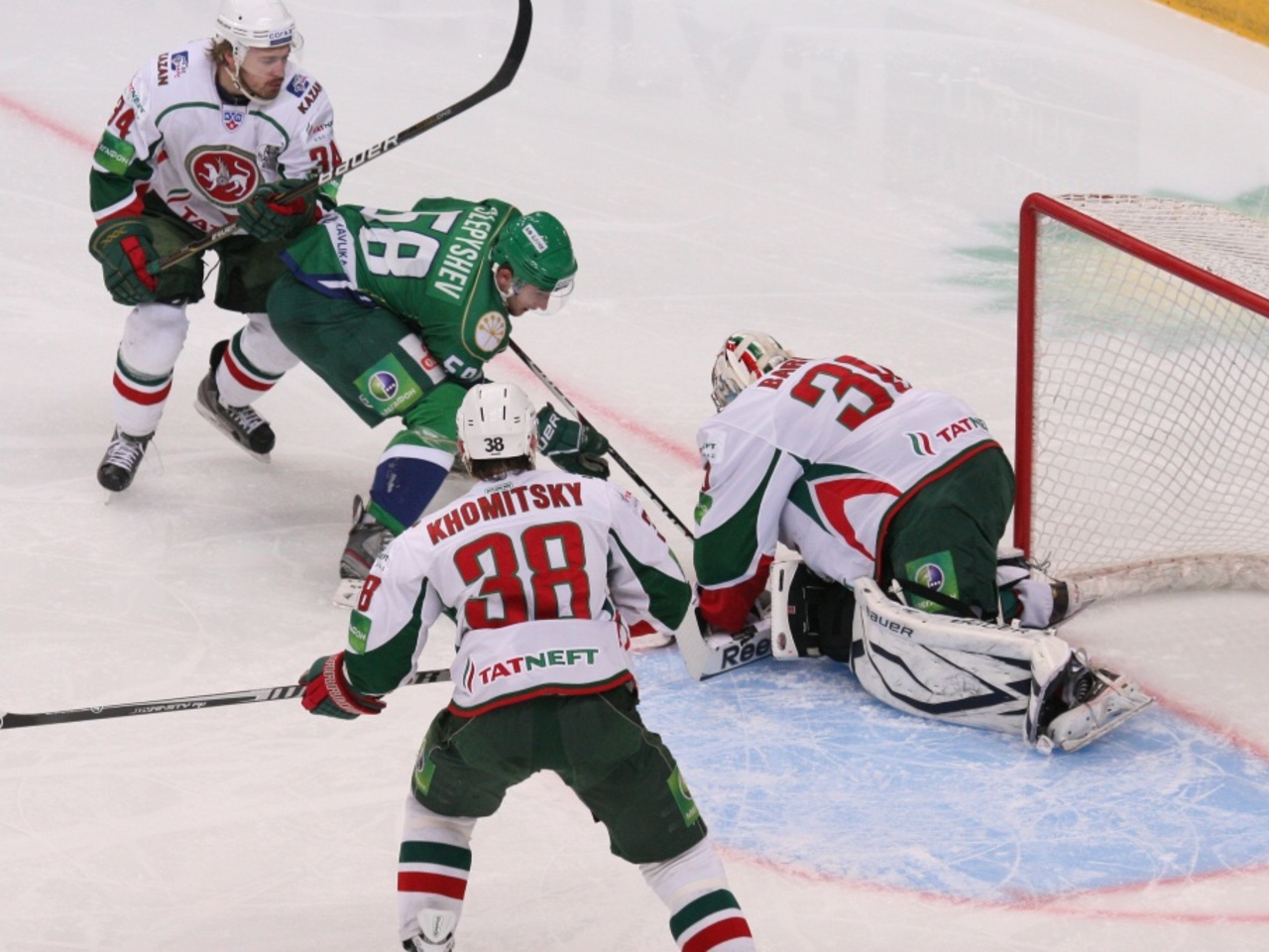 Четвертое противостояние двух «зеленых» монстров закончилось второй победой «Ак Барса». Несмотря на поражение 3:5, «Салават Юлаев» не выглядел в этот раз мальчиком для битья. Наоборот – команда очень сильно прибавила по сравнению с прошлым матчем, и зрители увидели настоящее дерби.