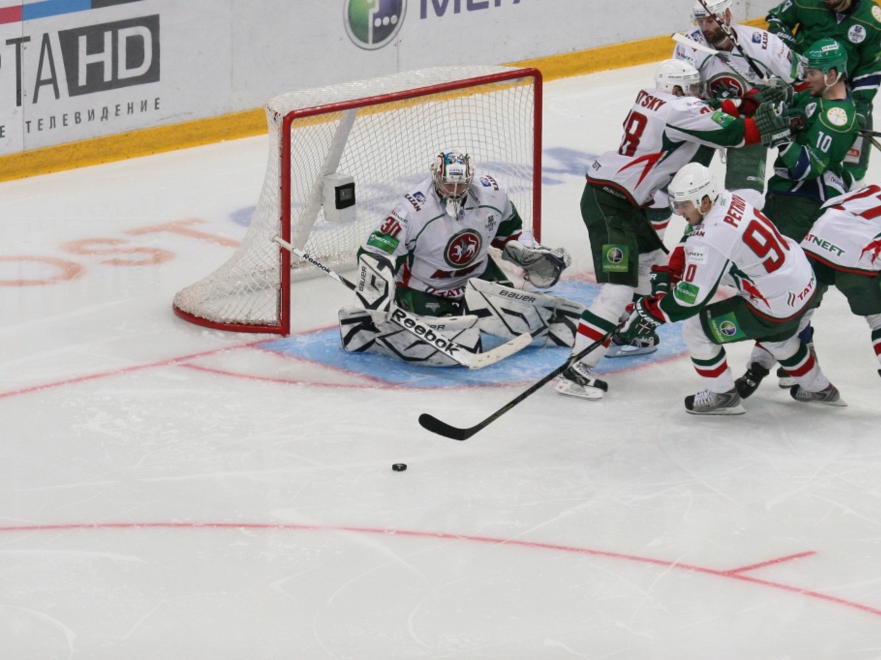 Казалось, «Ак Барс» сейчас разорвут. Но Казань воспользовалась ошибками и быстро счет сравняла. 2:0 превратились в 2:2. Почти обеспеченная победа вдруг запахла близким поражением.