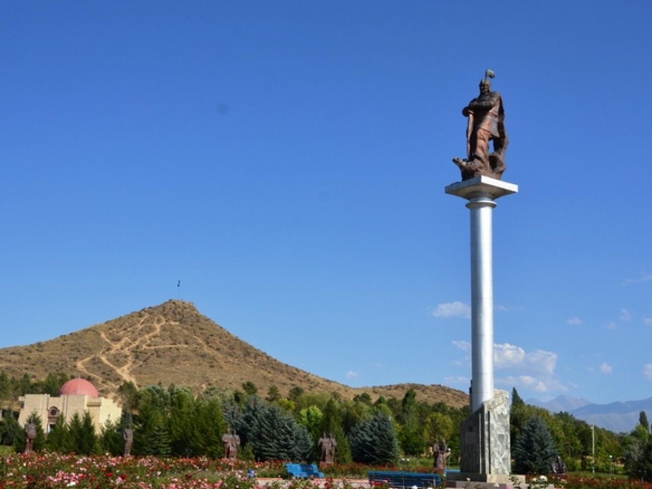 — Недалеко от города Талас, у подножия горы Кароол-Чоку находится Мавзолей Манаса. По легенде это и есть гробница богатыря. Мавзолей является памятником мемориально-культовой архитектуры XIV века, — рассказывает Улан. — Строение сложено из обожжённого кирпича, облицовано терракотовыми плитками и расписано куфийскими надписями. Кстати, на внутренних стенах здания, возможно, нарисованы сцены из иранского эпоса Шахнаме. В настоящее время мемориальный комплекс получил национальный статус «Манас Ордо» и находится под защитой государства.