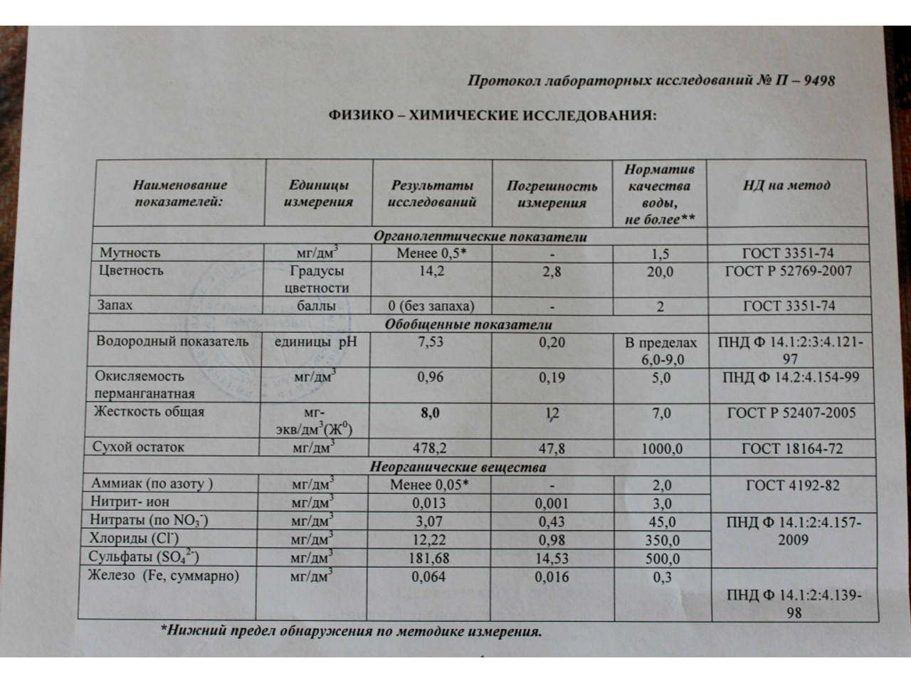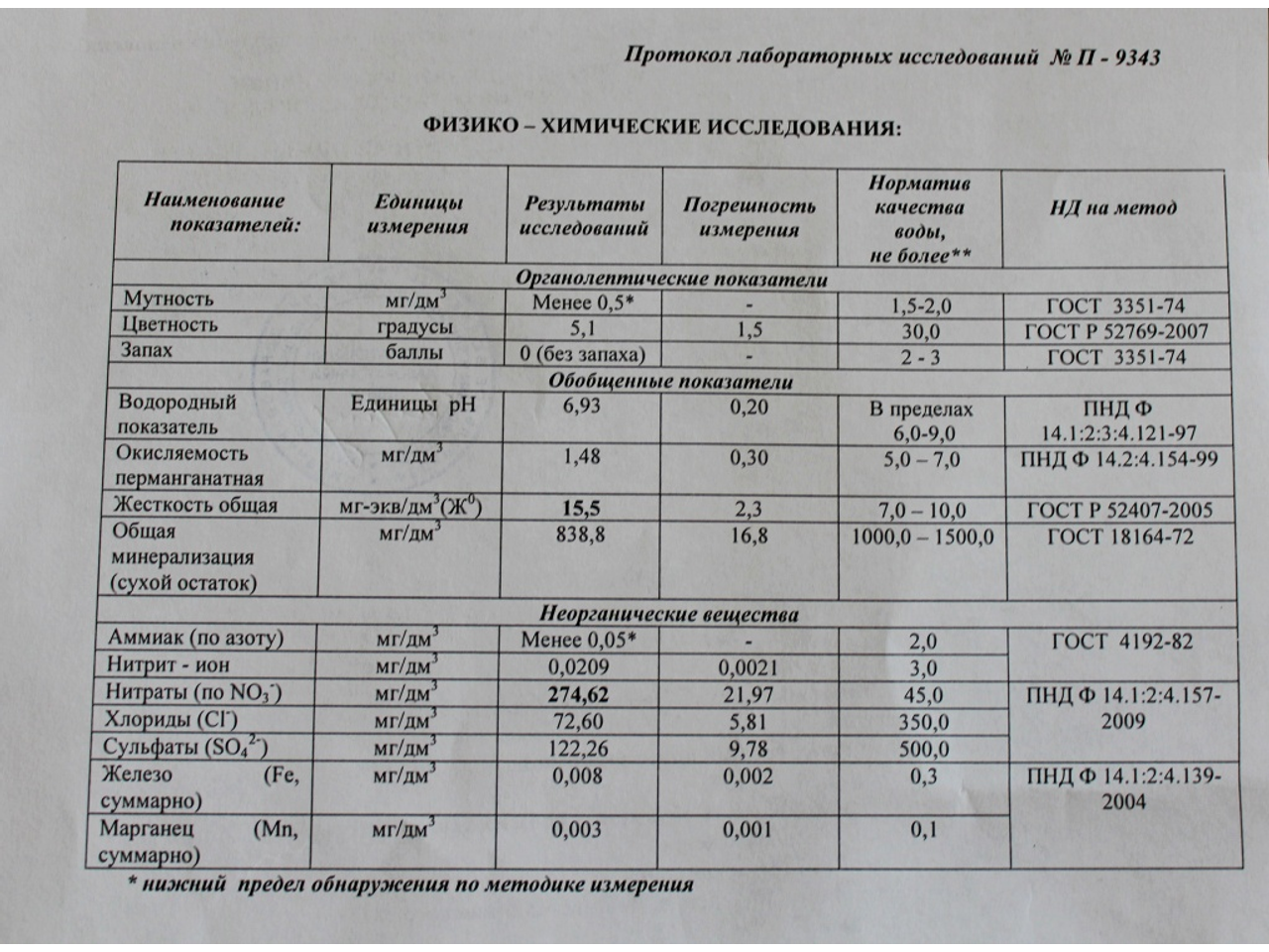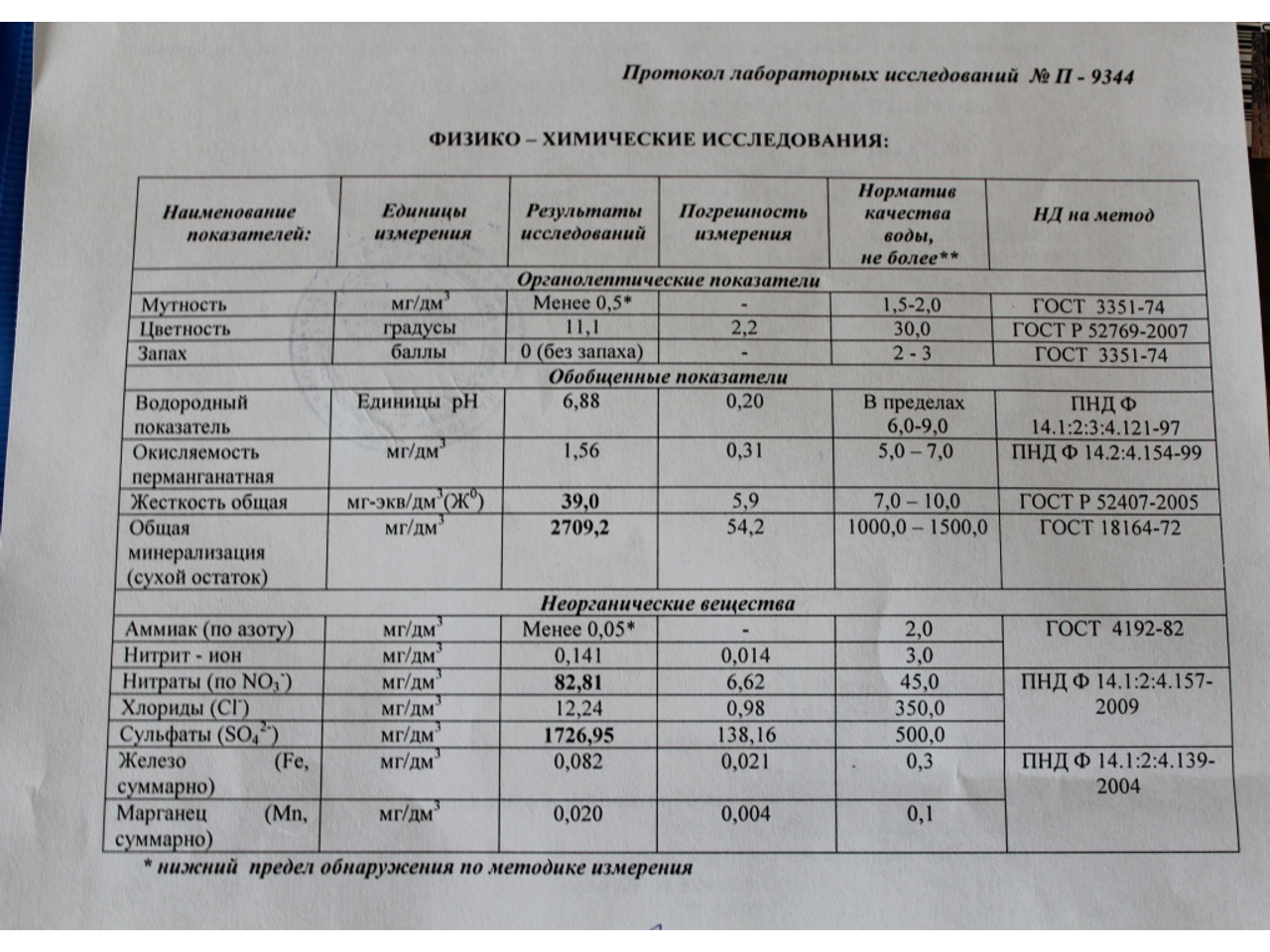 Проверка воды из скважины в Чишминском районе выявила все ту же сверхжесткость (15,5). А также превышение по нитратам в шесть раз.