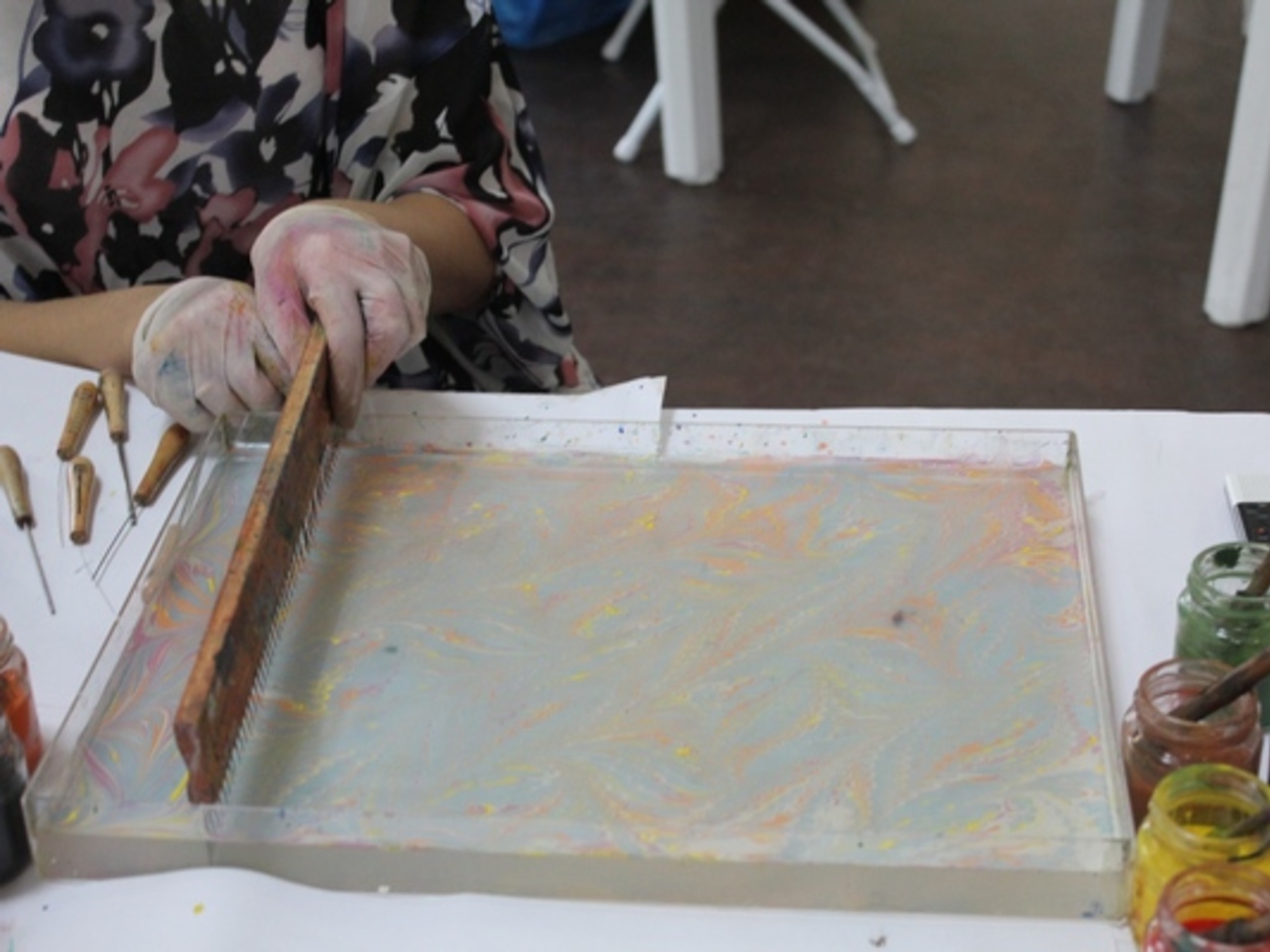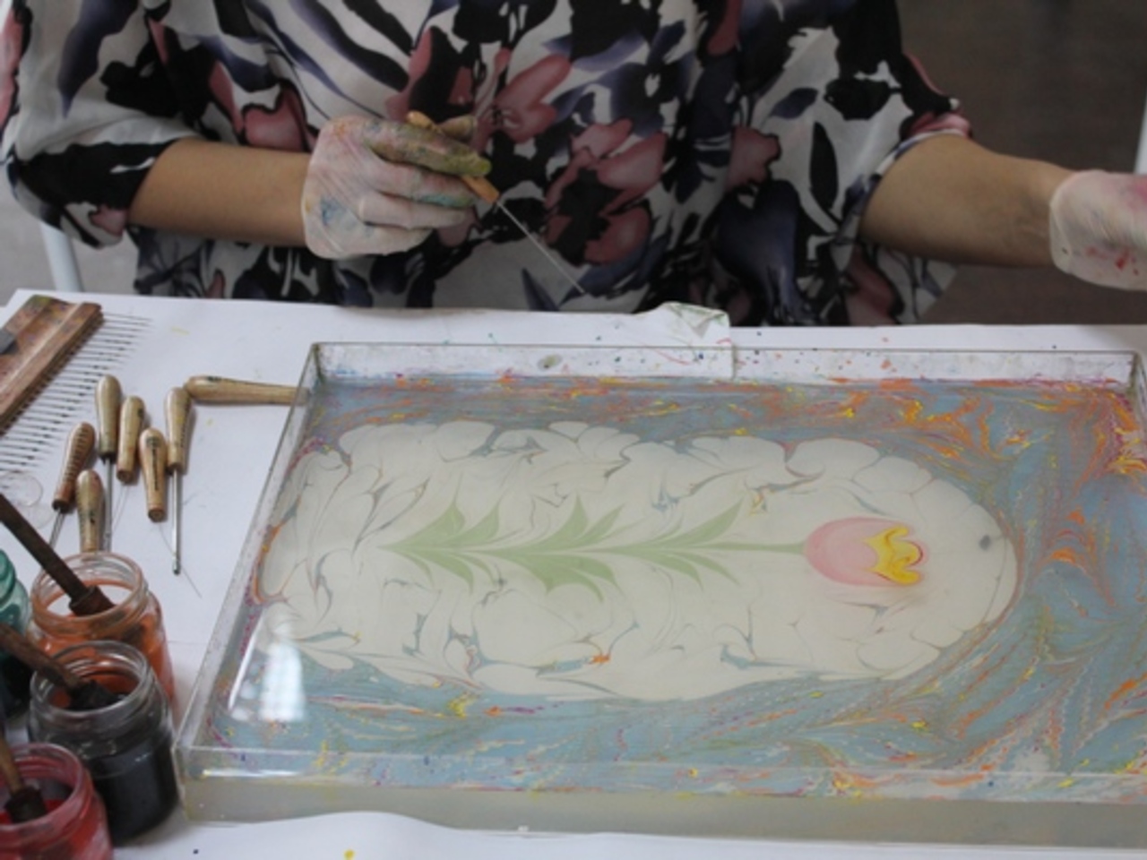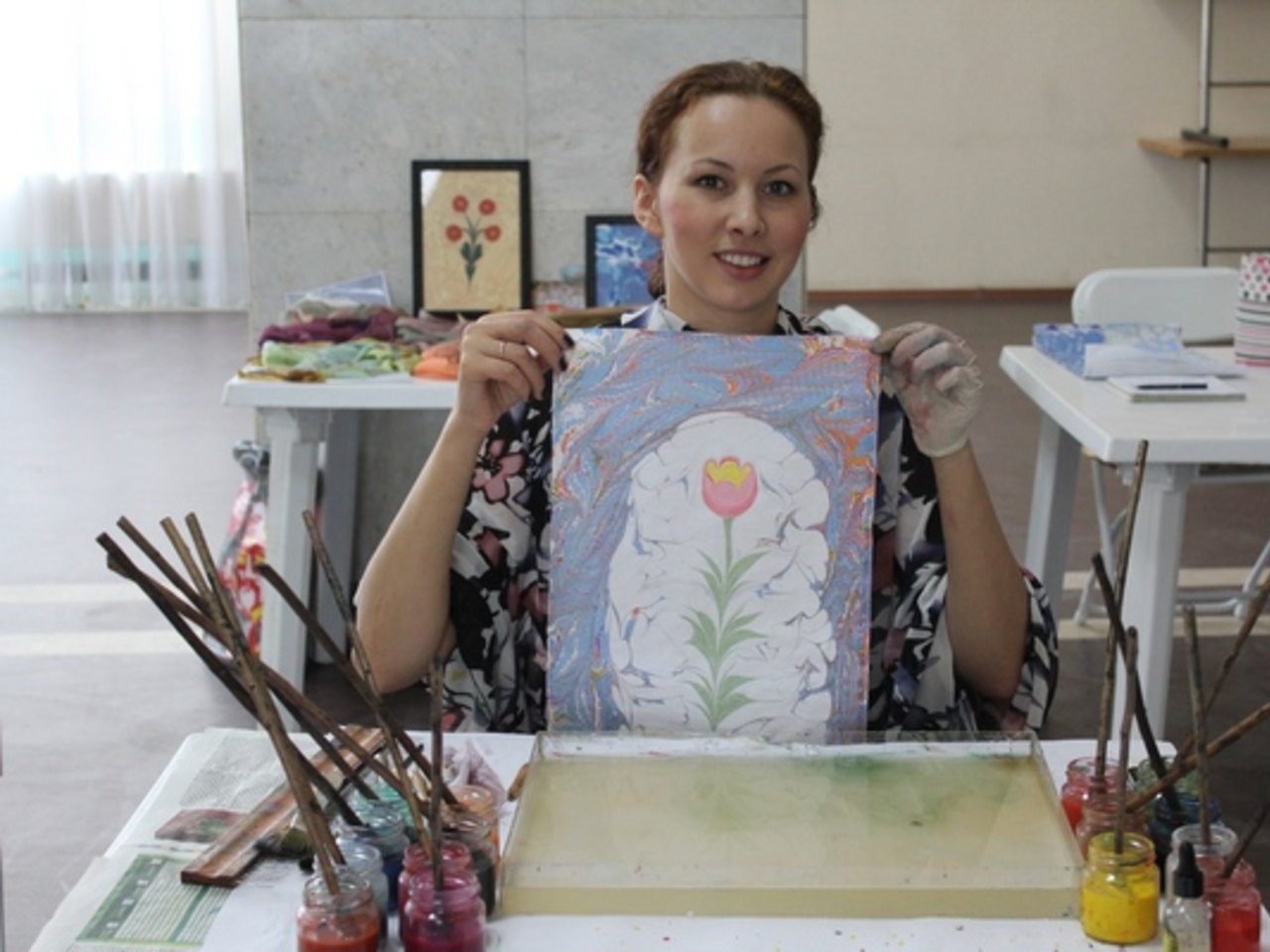 Светлана преподала мастер–класс эбру корреспонденту «Электрогазеты».