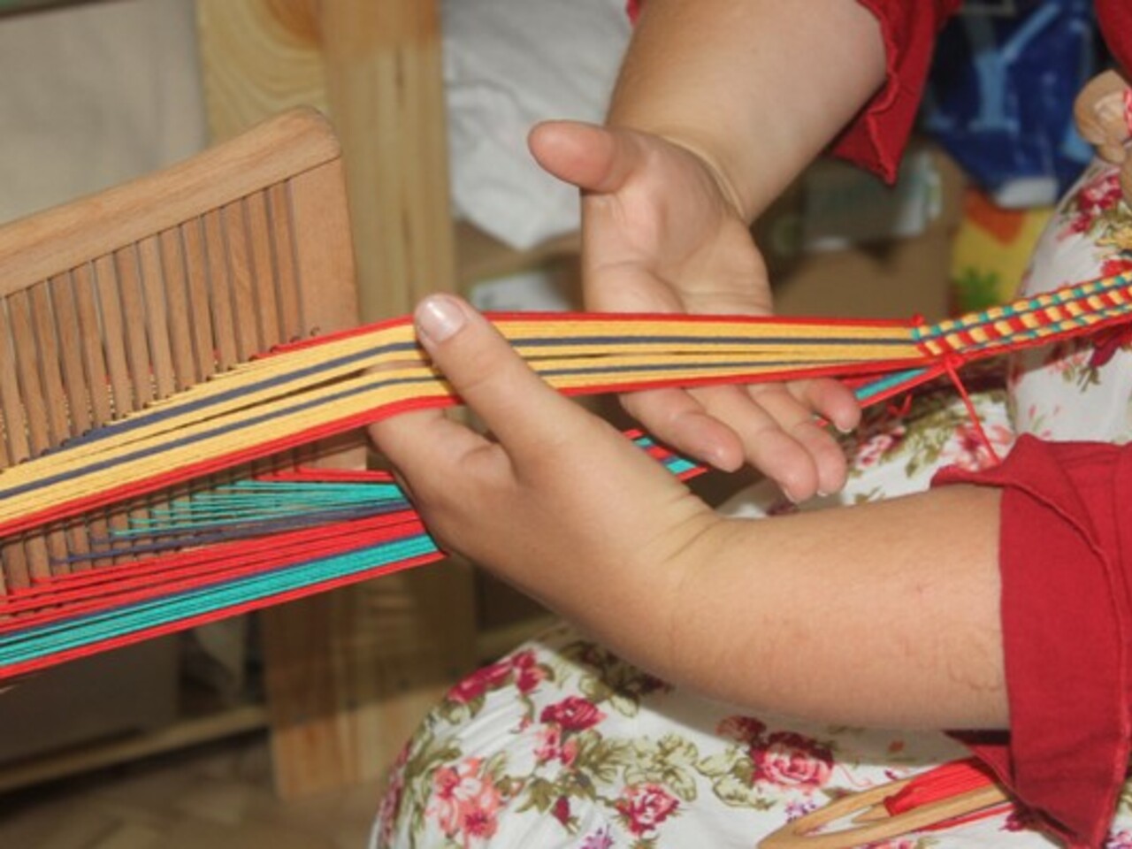 — Хотели бы вы самостоятельно соткать русский поясок — вещь, без которой в старину не обходился ни один наряд? Это очень просто, — говорит мастерица. — Для этого вам понадобятся лишь хлопковые нити и уникальный деревянный инструмент «бёрдо».
