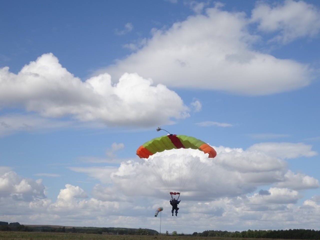 Мы летели на самолете Ан-2. Погодные условия были хорошие, взлет произошел комфортно. Полет продолжался минут 20. Прыгать нам предстояло с высоты три тысячи метров. Минут за пять до прыжка инструкторы прицепили парашютистов к себе, еще раз проверили и затянули все ремни. Потом открылся люк, и прыгнула первая пара. Следом прыгнули мы.