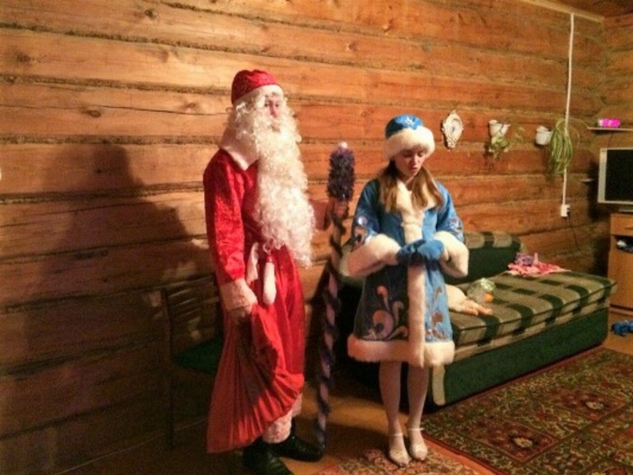 В прошлом году мы со Снегурочкой работали 30 и 31 декабря. Так как «дедморозил» я в первый раз, за месяц начали подготовку — разыгрывали сценки, заучивали диалоги, пришлось вспомнить загадки, прибаутки, песенки, натренировать особый, басовитый голос. Одолжили у знакомых костюмы, закинули в волшебный мешок килограмма три конфет — для тех, кто встретит нас по дороге, и отправились по заявкам.