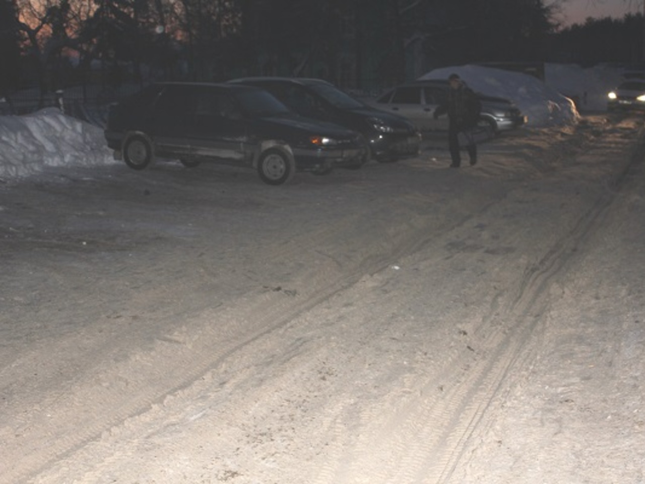 Это улица Зорге, территория возле Южного автовокзала, въезд на парковку со стороны гостиницы «Турист». Здесь может проехать только одна машина, встречной необходимо уступить, выехав из колеи. Однако выезд из колеи — это очень сложный и опасный маневр, машину начинает крутить, она не поддается управлению. Так и происходят многочисленные аварии на дорогах. Особенно страшны они на трассах, где высокие скорости. А ведь большинство аварий можно было избежать, если бы дороги вовремя очищались и приводились в порядок.